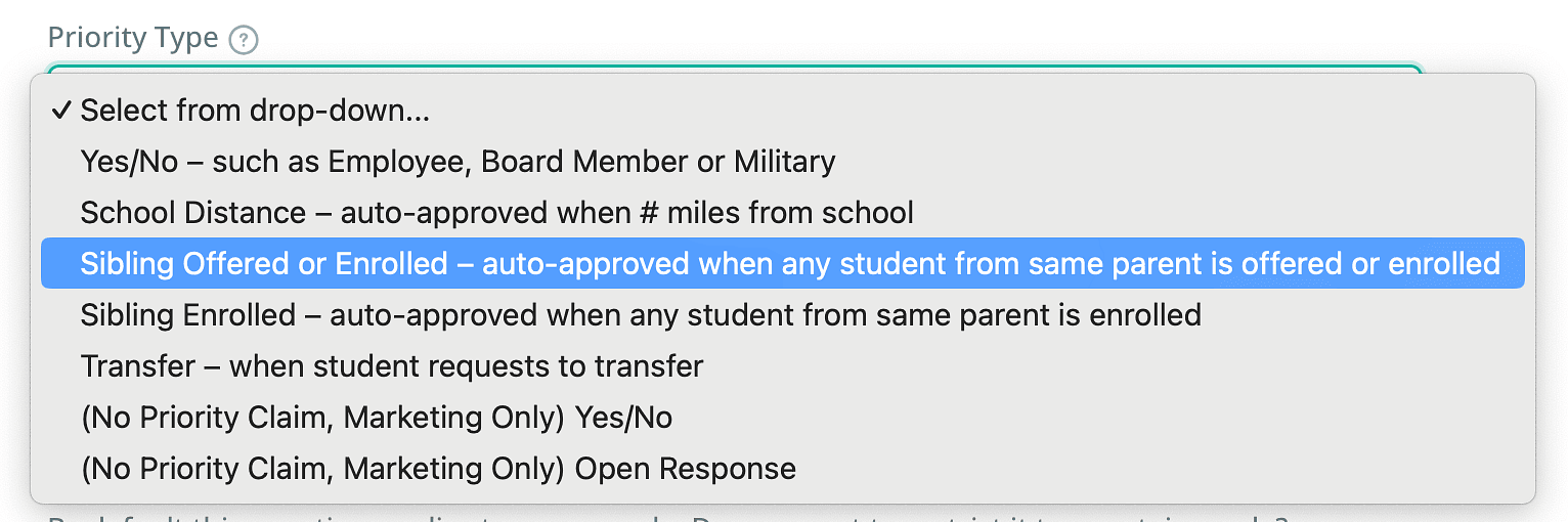 To set up priority groups go to: Settings / Enrollment Periods / Edit track year / Add New Item