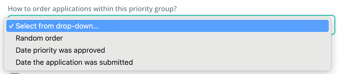 As you set up the priorities within the track year, you can select whether students within that group should be randomized within that group or ordered by date.