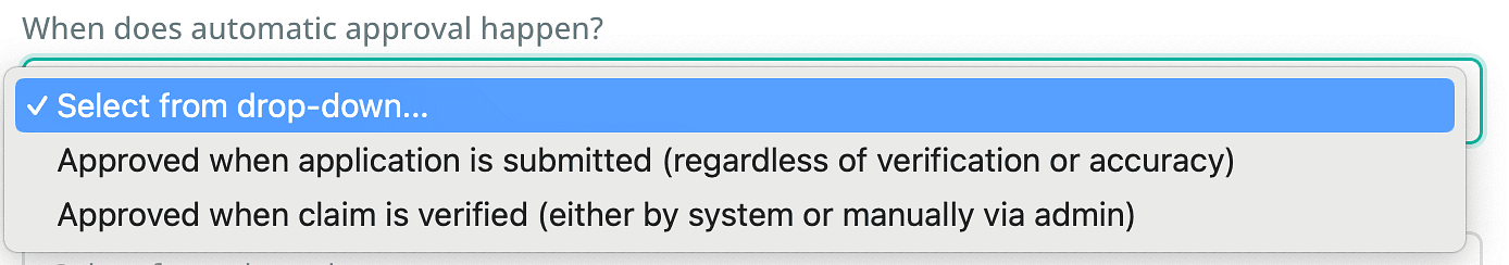 As you set up the priorities within the track year, you can select whether Admin needs to manually approve the claim or if you want the system to do it for you.