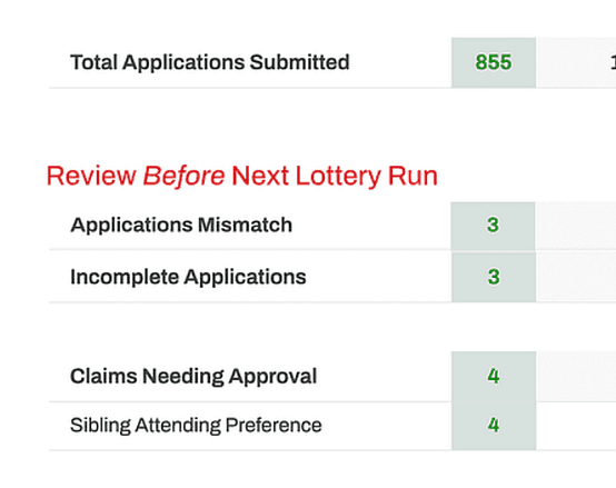 When you see this category listed on your dashboard, it means the Student Information System (SIS) is not matching up with Lottery.
